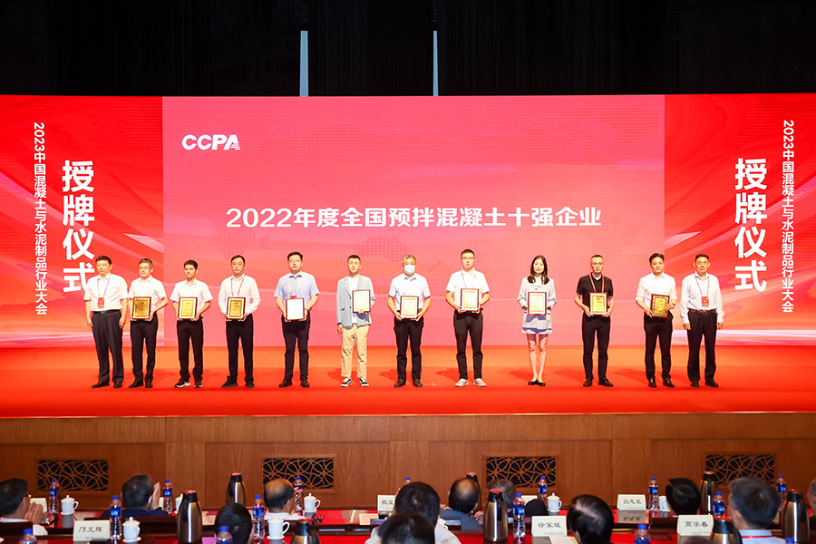 汇江混凝土有限公司蝉联“2022年度中国预拌混凝土十强企业”